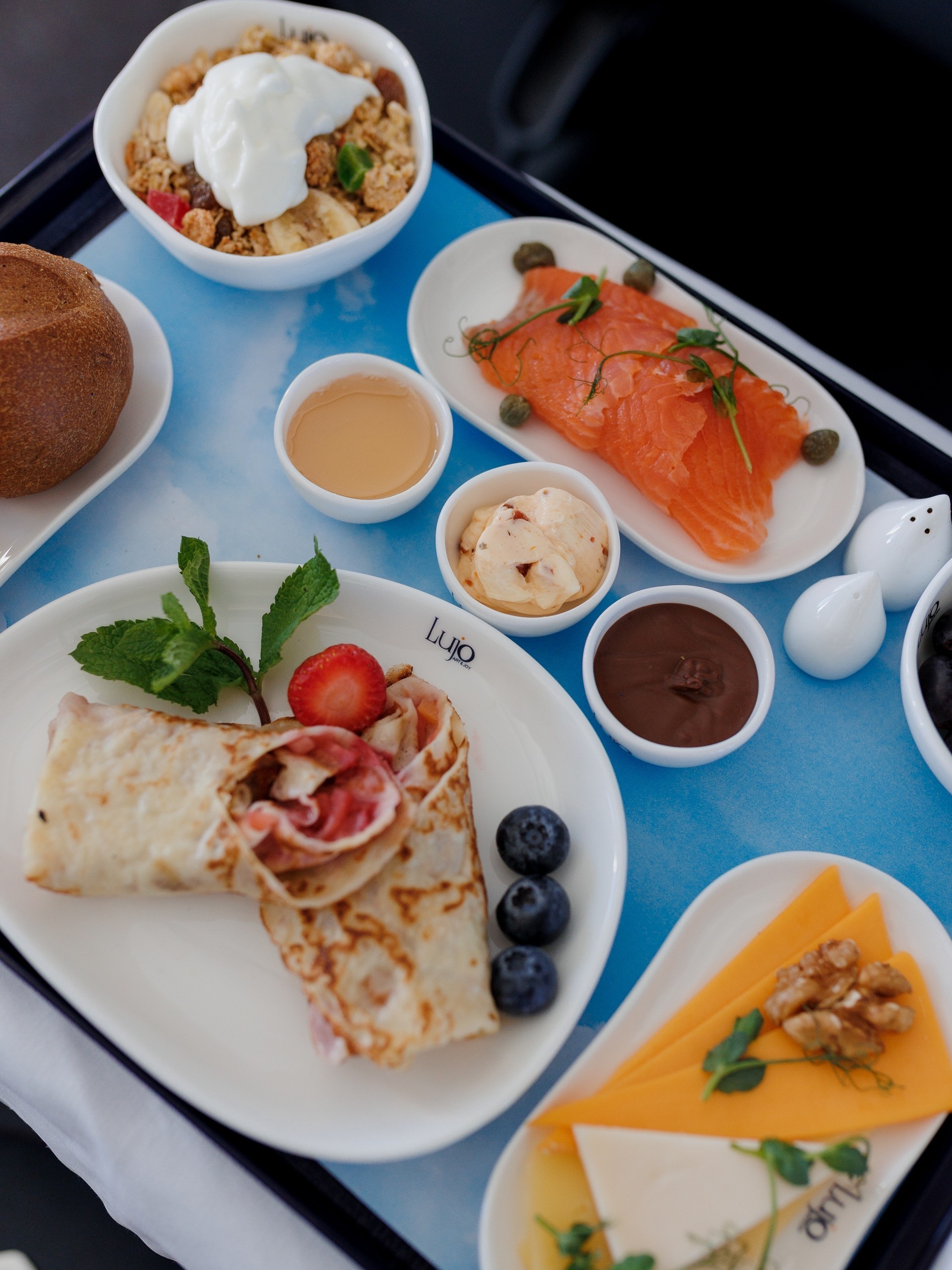 Для пассажиров готовят и изысканно сервируют комплексные завтраки, обеды или ужины из нескольких позиций. Есть и специальные линейки — детские или вегетарианские — если нужно особенное питание.